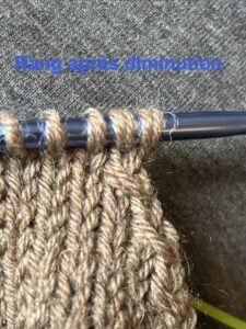 J’ai tricoté la tige en côtes 2/2 sur une certaine longueur.