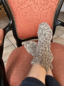 Le fil ne doit pas être trop gros au risque de ne plus pouvoir mettre de chaussures. Toutefois, j’apprécie les chaussettes de type “ski” pour feignanter les après-midi d’hiver devant la cheminée.